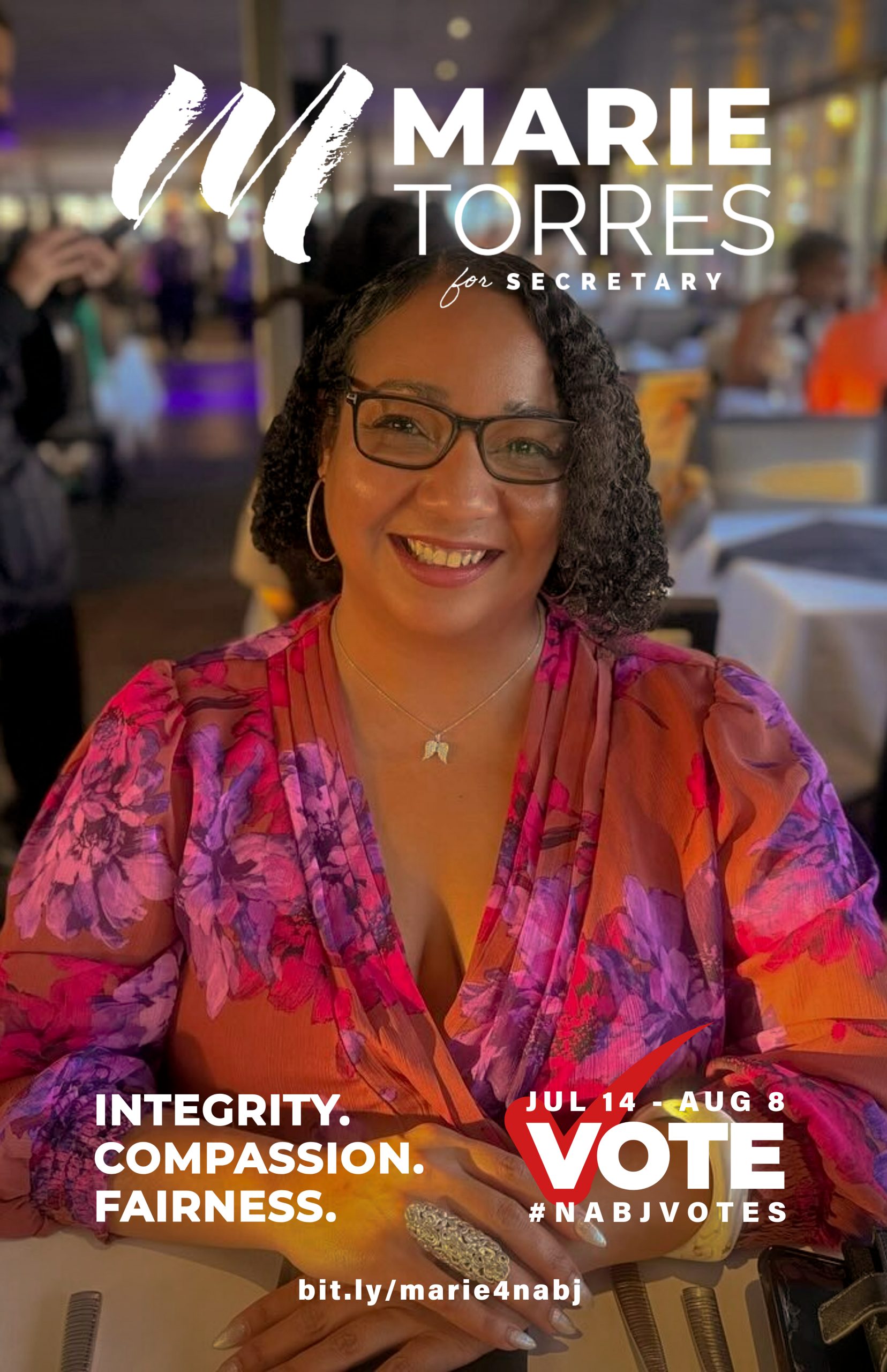 “I’m excited about the opportunity to serve as secretary for the National Association of Black Journalists. I’ll bring over 20 years of leadership experience and a proven record of growing organizations and talent. I’ve leveraged and showcased my skills over the years through my various roles within NABJ, both locally and nationally. NABJ is a passion for me because of the vast resources the organization provides to empower journalists, strategic communicators, and students. My goal in becoming secretary would be to strengthen NABJ and add to the extensive list of achievements this organization has accomplished thus far.” – Marie Torres